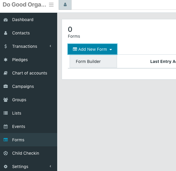 1. Locate Forms inside your Mission Pillars account on the left-side menu.